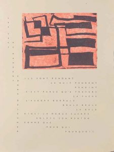 Portfolio édité par Illiazd contenant 5 poèmes illustrés de bois gravés en couleurs par Raoul Haussmann. Tirage unique à 50 exemplaires sur Japon ancien.