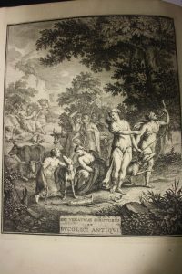 Poetae latini Rei Venaticae Scriptores et Bucolici Antiqui M. Aurelii Olympii nemesiani, Cynegeticon halieuticon & de Aucupio... Leyde & La Haye, J.A. Langerak, P. Gosse, J. Neaulme, Vander Kloot 1728, in-4 veau granité. Frontispice gravé, en-tête...