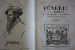 Du Fouilloux (Jacques) : La Venerie. Augmentée de la Méthode pour dresser et faire voler les Oyseaux par M. de Boissoudon, Précédée de la Biographie de Jacques de Fouilloux, par M. Pressac. Niort, Robin et Favre, 1864 ; in-4, demi-percaline vert...