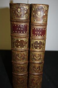 Duhamel Du Monceau : Traité des Arbres et Arbustes qui se cultivent en France. Paris, Guérin, Delatour,1755, 2 vol. in-4 veau tacheté, 4 planches dépliantes hors texte, 250 planches de botanique. Petite usure à trois coins, bel exemplaire.