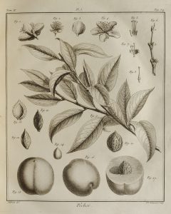 Duhamel du Monceau : Traité des Arbres Fruitiers. Paris, Saillant et Desaint, 1768, 2 vol., grand in-4 veau marbré, tranches dorées ; frontispice et 180 planches à pleine page. Très rares petits cernes. Très bel exemplaire.