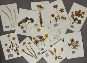 Herbier XIXe siècle, représentant plusieurs centaines d'espèces identifiées et protégées dans des chemises ; dans 3 classeurs roses in-folio. Bon état général.
