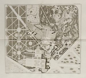 Krafft (J.A.) : Plans des plus beaux jardins pittoresques de France, d'Angleterre et d'Allemagne. Paris, Imp. Levrault, 1809-1810 ; 2 tomes in-folio oblong ; cartonnage rose de l'époque. Frontispice, 56 pp. de texte et 96 planches ; frontispice,...