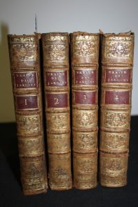 [Le Berryais] : Traité des jardins. Paris, Belin ; Caen, Manoury ; Avranches, Le Cour, 1789 ; 4 tomes in-8 ; veau fauve marbré, planches dépliantes. Coiffes abimées, usure à quelques coins.