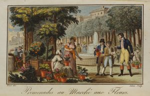 Edition originale de cet ouvrage charmant ; le frontispice représente le marché aux fleurs et les planches font une belle place aux plantes exotiques : cocotier, ananas, safran, palmier, canne à sucre, bananier, vanille, tabac, piment, cafeyer, cacaoyer, etc, les planches sont très finement aquarellées.