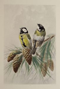 Theuriet (André) : Nos oiseaux. Aquarelles de Hector Giacomelli. Paris, Launette, 1886 ; in-4 ; demi-maroquin à coins bleu-marine, dos décoré de fers à l'hirondelle, tête dorée, couverture illustrée et dos conservés ; illustrations en...