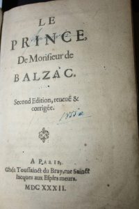 Balzac (Guez de) : Prince (Le). Seconde édition revue et corrigée. Paris, Toussaint-Du Bray, 1632 ; in-12 ; in 8 vélin de l'époque. Bel exemplaire.