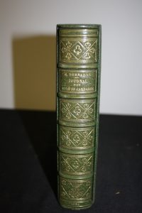 Bernanos (Georges) : Journal d'un curé de campagne. Plon, 1936 ; in-8 ; maroquin vert, décor de damier losangé orné de trèfles dorés , contreplats et gardes de soie moire verte, tranches dorées sur témoins, couverture conservée, étui...