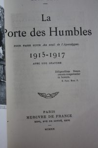 Bloy (Léon) : La porte des Humbles pour faire suite Au seuil de l'Apocalypse. 1915-1917 avec une gravure. Paris, Mercure de France, 1920 ; demi-maroquin à coins bordeaux, chiffre doré en queue, tête dorée sur témoins, couverture et dos...