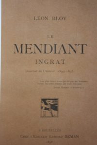 Bloy (Léon) : Le mendiant ingrat. (Journal de l'Auteur. 1892-1895). Bruxelles, Edmond Deman, 1898 ; in-8 ; demi-maroquin à coins violet foncé, dos très décoré et doré, chiffre doré en queue, tête dorée, couverture ocre et dos conservés,...