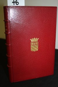 Costa de Beauregard : Prédestinée. Paris, Plon, 1897 ; in-8 ; maroquin rouge, plats aux armes. Couverture conservée, tranches dorées (Canape). Parfait état. Armes non identifiées.