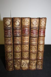 [Marivaux] : Aventures de... ou les effets surprenants de la sympathie. Paris, Huet, 1713 ; 5 tomes in-12 ; veau jaspé. Titre en rouge et noir aux tomes 1 et 2, catalogue du libraire en fin de T5. Edition originale rare, attribué à Bordelon, au...