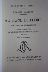 Maurras (Charles) : Au signe de Flore, souvenirs d'une vie politique. La fondation de l'Action Française. Orné de 16 gravures en fac-similé. Paris, Les Oeuvres Représentatives (Collection "Hier"), 1931 ; in 8, demi-maroquin à coins rouge,...