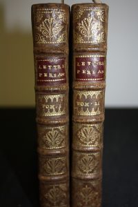 Montesquieu : Lettres Persanes. Amsterdam, Brunel, 1721, 2 vol. in-12 basane brune ; édition à la date de l'original, (8 éditions à cette date), les deux premières par Marteau à Cologne.