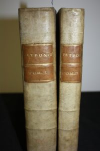 [Petrone] : Titi Petronii arbitri Satyricôn quae supersunt cum integris Doctorum Virorum Comentariis ; Nicolai Heinsii et Guglielmi Gaesii [...] Petro Burmanno. Amstelodami, Jansonio Waesbergios, 1743, 2 tomes in-4 demi velin à coins, non rogné ;...
