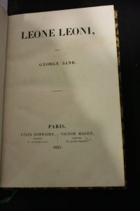 Sand (George) : Léone, Léoni. Paris, Félix Bonnaire, Victor Magen (Everat Imp., indication "Publication de la Revue des Deux Mondes" sur la page de garde), 1835 ; in-8 ; demi-veau glacé noisette, dos décoré à froid et doré ; [4], 340...