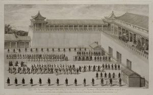 Réduction, par Helman, de la Suite originale de très grand format, gravée d'après les dessins des jésuites Attiset, Damascus et Castillion réalisés à Pékin et commandée en France par l'Empereur Kien-Longh, par l'entremise de la Compagnie des Indes, et de M. de Marigny qui s'adressa à Cochin pour mener à bien cette importante réalisation ; les 16 gravures furent réalisées de 1770 à 1774 par Le Bas, Choffard, Saint Aubin et Alliamet. Le tirage à 100 exemplaires fut entièrement envoyé en Chine en 1774, à part quelques rares épreuves ou présents ; c'est d'après ces épreuves que Helman, élève de Le Bas, en exécuta une réduction dont il y eut 3 tirages : le premier en 1783-1784 reproduisant les 16 estampes originales ; le second, en 1786, fut augmenté de deux scènes fort célèbres : la Cérémonie du labourage et la Marche ordinaire de l'Empereur dans la ville de Pékin en 3 planches mises bout à bout soit 20 planches au total ; en 1788, 4 planches furent rajoutées : La fête des vieillards et les Cérémonies respectueuses de l'Empereur pour ses ancêtres.
