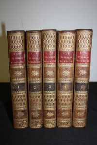 Marshall (John) : Vie de Georges Washington général en chef des armées américaine, durant la guerre de l'Indépendance, et Président des Etats-Unis d'Amérique. Paris, Dentu, 1807 ; 5 tomes in-8 ; veau raciné, dos très décoré et...