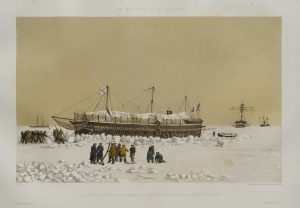 Paris (E.) amiral. Nos souvenirs de Kil-Bouroun, pendant l'hiver passé dans le limon du Dnieper. 1855-1856. Paris, Arthus Bertrand ; in plano oblong, demi maroquin brun foncé à coins et percaline bleue marine, tête dorée, titre doré sur le plat...