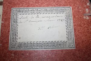[Saint-Domingue. Manuscrit] : Suite de la Correspondance de Saint Domingue. Année 1789. 2e volume, petit in-folio ; demi-vélin ; 150 pp. Recueil de bons mots, épigrammes, etc. et notes manuscrites. Couvre la période jusqu'en décembre 1783....