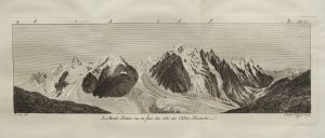 Saussure (Horace-Bénédict) : Voyages dans les Alpes précédés d'un essai sur l'Histoire naturelle des environs de Genève. T1 Neuchâtel, Samuel Fauche, 1779 ; T2 : Genève Barde, Monget et Cie, 1786. 2 vol. in-4 demi-vélin à coins. [4], XXXVI,...