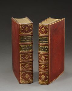 [Suetone] : Caji Suetonii Tranquilli. Opera et in illa commentarius Samuelis Pitisci... Leovardiae (Leeuwarden,Pays-Bas), Franciscus Halma, 1714 ; 2 tomes in-4 ; maroquin grenat, très décoré et doré, tranches dorées. Frontispice gravé, vignette...