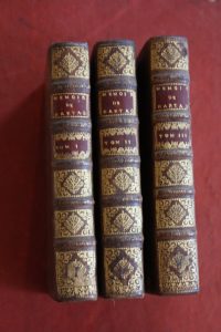 Artagnan (Charles de Baatz d') : Mémoires de M. D'Artagnan capitaine-lieutenant de la première Compagnie des Mousquetaires du Roi. Cologne, Pierre Marteau, 1700 ; 3 tomes in-12 ; veau havane ; [6], 440 ; 497 ; 492 pp. Mémoires rédigés par...