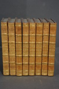 Capefigue (B.H.R.) : Richelieu, Mazarin, la Fronde et le règne de Louis XIV. Paris, Dufey, 1835 ; 8 tomes in-8 ; demi-veau glacé vieux rose, dos très décoré et doré, et à froid. Minuscule fente à un mors, sinon bel exemplaire dans une reliure...