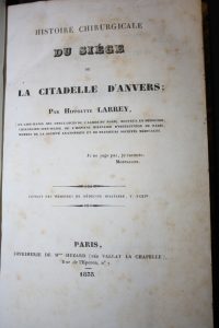 Larrey (Hippolyte) : Histoire chirurgicale du siège de la citadelle d'Anvers. Paris, imprimerie de Mme Huzard, 1833 ; in-8 ; demi-veau teinté au dos ; 372 pp. Edition originale rare, envoi autographe signé "A Monsieur le Comte de Rambuteau,...