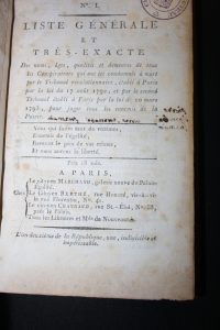 Liste générale et très exacte des noms, âge et demeure de tous les conspirateurs condamnés à mort par le Tribunal Révolutionnaire... Paris, Marchand, Berthé, Channaud, an 2 ; in-8 ; reliure fauve d'époque ; neuf listes de 32 pp. chacune,...