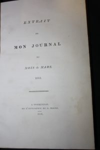 Louis-Philippe d'Orléans : Extrait de mon journal du mois de mars 1815. Twickenham, White, 1816 ; in-8 ; demi-chagrin à coins lavallière, tête dorée, chiffre doré en queue ; [4], 147, [7] pp. Edition originale avec le feuillet d'Errata. Lors...