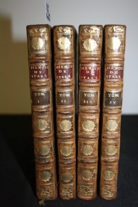 Staal (Marguerite-Jeanne Delaunay, baronne de ; 1684-1750) : Mémoires écrits par elle-même. Londres [i.e. Paris], s.n., 1755 ; 4 tomes in-12 ; veau marbré de l'époque, dos décoré et doré. Edition originale, le titre du 4ème volume porte...
