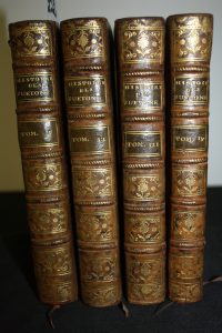 Suetone : Histoire des douze Césars. Traduite par Henri Ophellot de la Pause, avec des Mélanges Philosophiques et des Notes. Paris, Saillant et Nyon 1771, 4 vol. in-8 basane marbrée, édition bilingue. Bel exemplaire très frais.