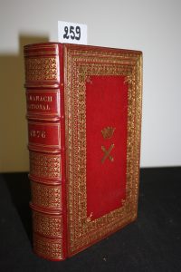 Almanach National. 1876. Paris, Berger-Levrault ; fort in-8 ; plein maroquin rouge, dos très décoré ; armes du comte de Mac Mahon, duc de Magenta, Maréchal de France et 3e Président de la République Française : triple dentelle dorée, deux...