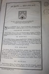 [Bourbonnais. Berri. Nivernois] D'Hozier Familles : Semin de Bransac en Bourbonnais. [Puis] De Villaines. De La Loere. Hodemeau. Breuignon. Reliés en un tome in-folio ; demi-reliure. Notices généalogiques avec les armes, certifiées par d'Hozier,...