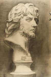 1910 ca. CARPETA CON APROX. 25 DIBUJOS ORIGINALES DE DOLORES PARES. Apuntes, anatomía humana, temática religiosa, elementos arquitectónicos. El lote se completa con dos paletas de madera y algunos grabados religiosos. Varios tamaños.