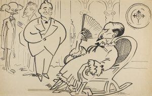 1918. PICAROL (JOSEP COSTA FERRE): [ESCENAS DE GENTE DE BIEN]. Tinta sobre papel, 27,5x44 cm. Publicado en La Campana de Gracia el 20 de julio de 1918.