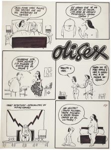 1980 ca. OLI (ENRIQUE OLIVAN TURRAU): 4 PLANCHAS DE DIBUJOS DE HUMOR EROTICO. OLISEX. 43x32 cm. Firmados. En el dorso indicaciones para su publicación en la revista El Papus.