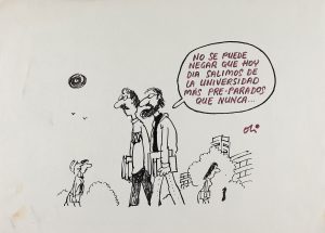 1980 ca. (COMIC). OLI: CONJUNTO DE 15 DIBUJOS ORIGINALES PARA COMIC PUBLICADOS EN LA REVISTA EL JUEVES O EN EL PAPUS. Tinta sobre papel en tamaño folio.