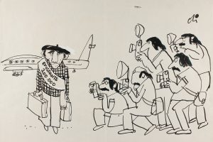1980 ca. (COMIC). OLI: CONJUNTO DE 15 ORIGINALES PARA COMIC DE CRITICA SOCIAL, PUBLICADOS EN LA REVISTA EL JUEVES O PAPUS. Tinta sobre papel tamaño folio.
