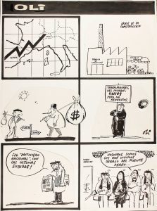 1980 ca. (COMIC). OLI: 3 HOJAS PLANTILLAS DE COMIC PUBLICADOS EN LA REVISTA PAPUS. Tinta sobre papel montado en cartoné. 44x32 cm. con 6 viñetas cada uno.