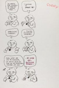 1980 ca. (COMIC). CONJUNTO DE 7 ORIGINALES DEL PERSONAJE GORBY, PUBLICADOS EN EL JUEVES. Tinta sobre papel. Folio apaisado. Varias viñetas en cada hoja.