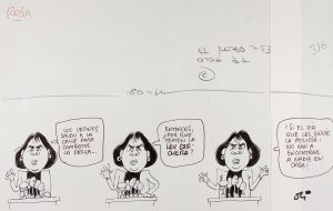 1980 ca. (COMIC). OLI: CONJUNTO DE 6 ORIGINALES DEL PERSONAJE ROSA ROSOE O ROSOTA, PUBLICADOS EN EL JUEVES. Tinta sobre papel. La mayoría en folio apaisado y con varias viñetas en cada hoja.