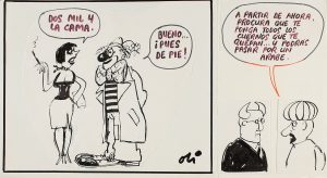 1985 ca. (COMIC). OLI: CONJUNTO DE 29 ORIGINALES EROTICO-SATIRICOS. Tinta sobre cartoné. Varios tamaños, desde gran folio con varios originales a 15x16 cm.