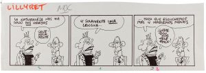 1985 ca. (COMIC). OLI: CONJUNTO DE 5 HOJAS CON ORIGINALES DEL PERSONAJE BENITES Y 10 DEL PERSONAJE LILIBETH, PUBLICADOS EN EL JUEVES. Tinta sobre papel en folio apaisado. Aprox. tres viñetas en cada hoja.