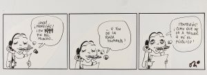 1985 ca. (COMIC). OLI: CONJUNTO DE 19 ORIGINALES DE VARIOS PERSONAJES PUBLICADOS EN EL JUEVES. Tinta sobre papel. Folio apaisado. Varias viñetas en cada hoja.