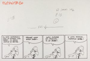 1985 ca. (COMIC). OLI. CONJUNTO DE 4 ORIGINALES DEL PERSONAJE ESPARTACO, Y OTROS 40 DE PERSONAJES VARIOS (RUBIALES, LOBATIN, EUGENIO, YELTSIN,...) PUBLICADO EN EL JUEVES. Tinta sobre papel. Folio apaisado. Varias viñetas en cada folio.