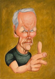 2005 ca. (ILUSTRACIONES-SATIRICAS). LLUVA NABAU, JORDI: ORIGINAL RETRATO COMIC DE CLINT EASTWOOD. Lápiz, color y aguada sobre cartoné de 42x30 cm. Firmado.