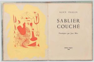 Paalen (Alice). Sablier couché. S.l., Éditions Sagesse, 1938. In-8, cousu d’un fil rouge, sous couverture papier Japon épais.