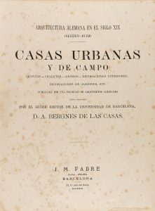 1860 ca. (ARQUITECTURA). ARQUITECTURA ALEMANA EN EL SIGLO XIX. CASAS URBANAS Y DE CAMPO. QUINTAS. CHALETES. KIOSCOS. DECORACIONES INTERIORES, DECORACIONES DE JARDINES, ETC. Barcelona: J.M. Fabre, s.a. 5 vols. en folio. I: 34 h. + 125 láms.; vols....